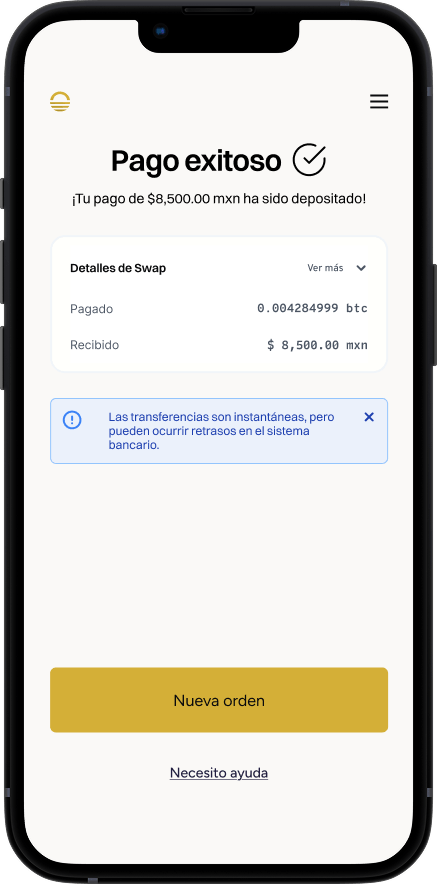 Convierte tu Bitcoin a pesos mexicanos y envíalo a cualquier cuenta bancaria, tarjeta o número de teléfono en México. Rápido, seguro y confiable.